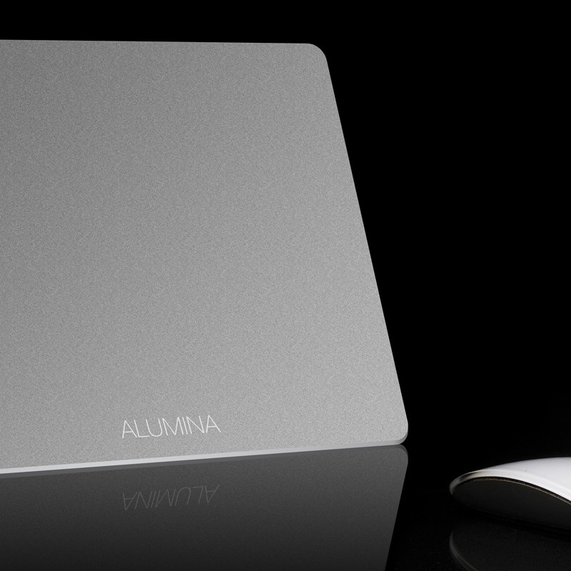 Base de aluminio para mouse con textura microscópica que mejora la lectura de los sensores.