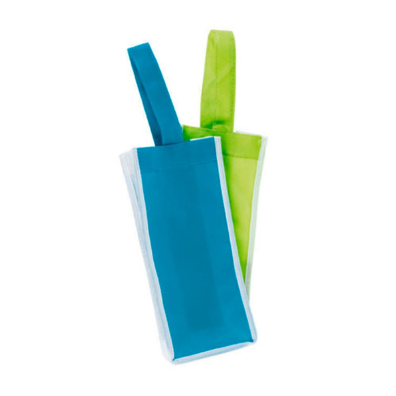Bolsa tipo ecológica para botella con asa frontal sujetable.